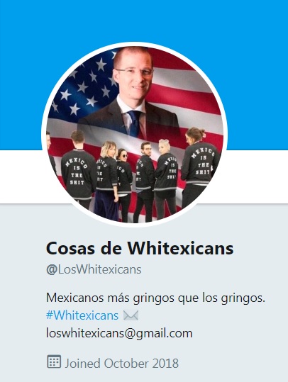 La imagen que ilustra el perfil de la cuenta muestra al excandidato presidencial Ricardo Anaya, un político blanco y conservador que presumía de hablar inglés y francés, rodeado de banderas estadounidenses.