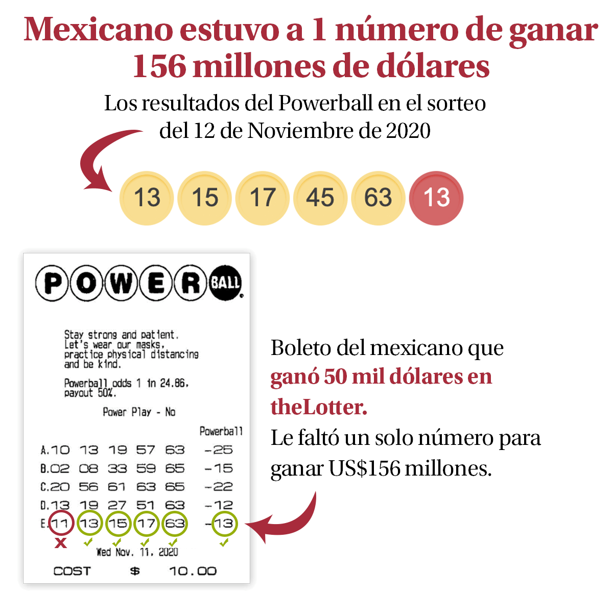 Un mexicano estuvo a 1 número de ganar 156 millones de dólares en noviembre de 2020