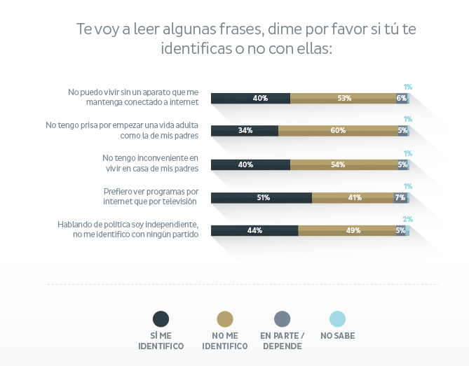 Además, el 34 por ciento de los jóvenes dijo que no tiene prisa en empezar una vida adulta como la de sus padres. Además, piensan que el promedio ideal de hijos que una pareja debería tener es de 2.4.