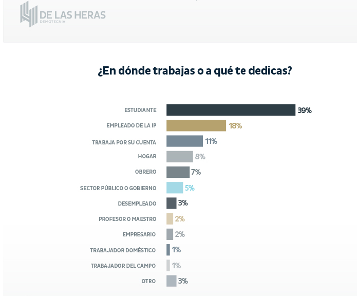 La encuesta, aplicada a 3 mil personas, demostró que el 47 por ciento de esta población aún se dedica a estudiar y de este grupo, son el 75 por ciento los que aun dependen económicamente de sus padres para cubrir los gastos de sus estudios .