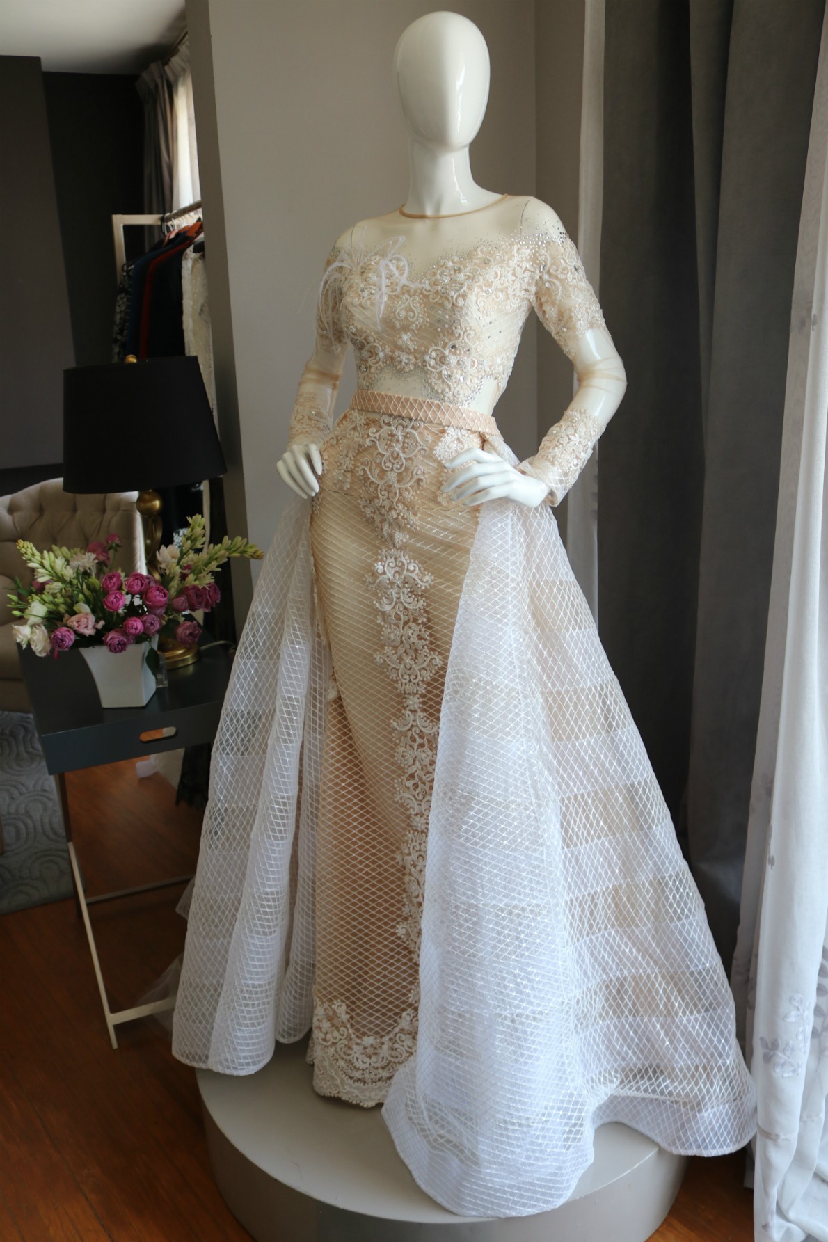 "Ahorita estamos trabajando en la primera colección de novias formal, lo mío ha sido empírico. Conforme van llegando las clientas vamos trabajando. Yo hago los vestidos junto a mis clientas, platicamos, vemos lo que le gusta y ambas creamos el vestido, pero nos dimos cuenta de la importancia que tiene también tener una colección ya armada, por lo que decidimos hacer el trabajo más formal".