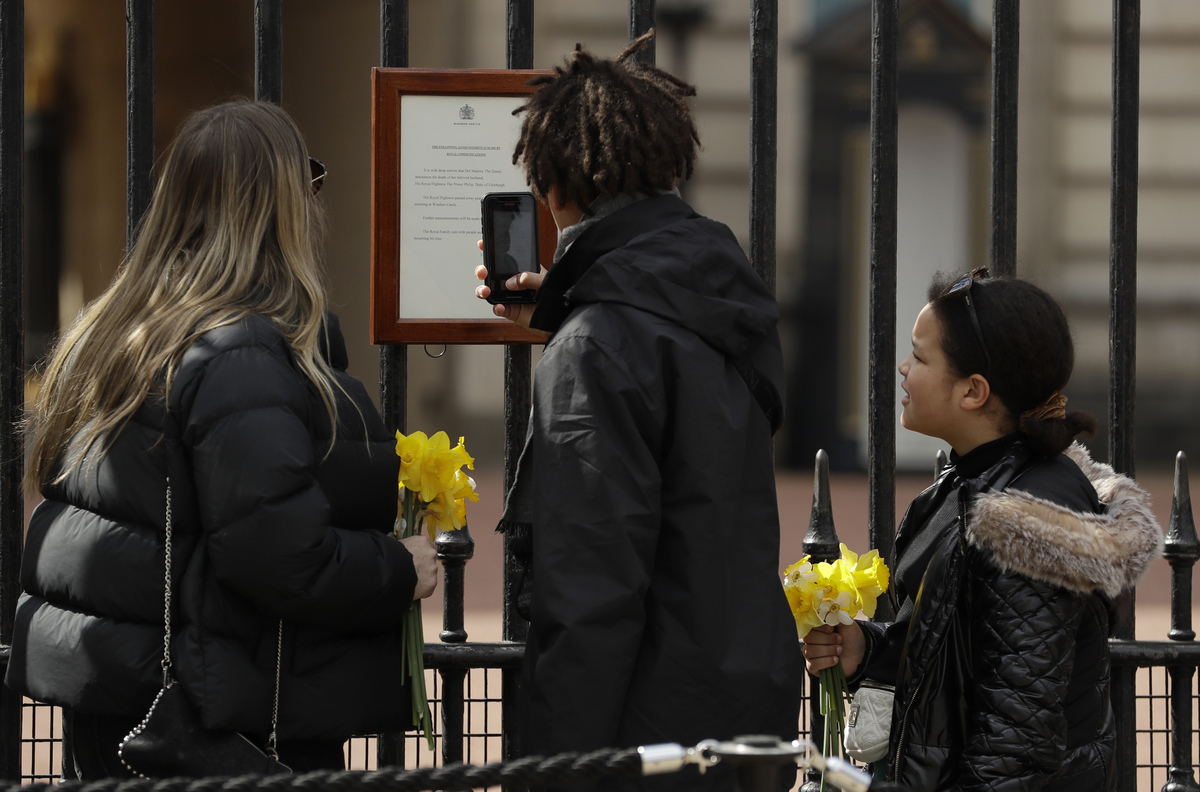 Algunos deslizaron narcisos a través de las puertas negras del palacio o colocaron mensajes, ramos de flores o incluso banderas británicas sobre la acera.