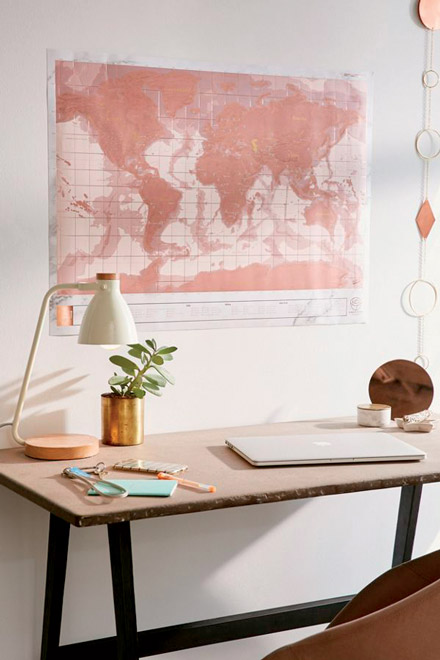 Es un encanto visual con sinfín de creaciones que no querrás sacar de tu shopping list. Su rose gold scratch-off world map permite marcar los países visitados y es un detalle de decoración único para casa u oficina.