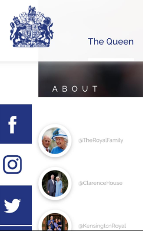 Ahora sólo se muestra en la página de los Windsor la opción de dirigirse a las redes sociales de la reina, en donde tambi´n se brinda información de otros miembros de la familia, y a las del palacio de Kensington y Clarence House, pertenecientes a los duques de Cabridge, Kate y William, y al Duque de Gales y su esposa, Camilla, respectivamente.