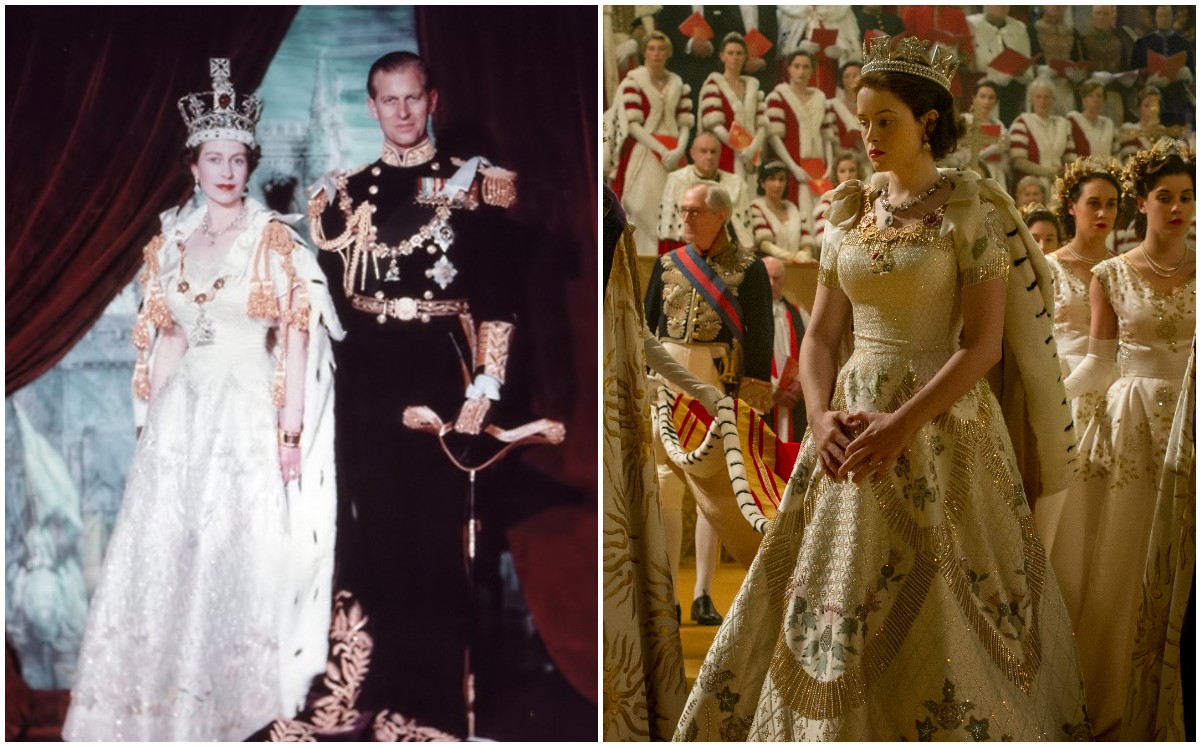 Si algo debemos aplaudir a The Crown es el implacable detalle del vestuario y otros elementos de utilería; aquí te dejamos una imagen del vestido que usó en la vida real Isabel II y el que se mostró en la serie, ¿se parecen?