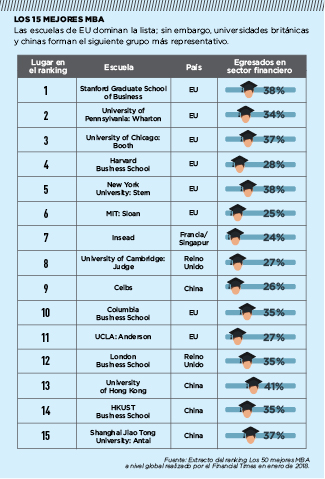 Aunque la industria bancaria se mantiene como un empleador clave de profesionistas con Maestrías en Administración de Negocios (MBA, por sus siglas en inglés), otras industrias ya compiten por ese talento, de acuerdo con el ranking del Financial Times de los 50 mejores lugares para estudiar una carrera en finanzas.