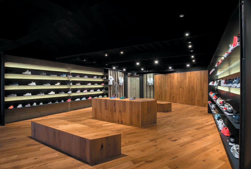 La tienda fue diseñada por el estudio Materia con madera y ladrillo para simular una cabaña, sin embargo está llena de sorpresas que no encontrarías en medio de un bosque, como un patio lounge y una sala dedicada exclusivamente al diseño de trajes a la medida.