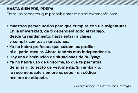 Pasar de la preparatoria a la universidad es una de las primeras grandes acciones de vida. Estos primeros pasos a la adultez se darán con más independencia de los padres, seguros y confiados de las capacidades de sí mismos.