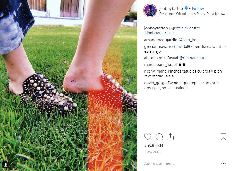 En una publicación posterior en Instagram, Sofía Castro aseguró que Jonboy no cobró por sus servicios, pues ella lo había invitado "para intercambiar tatuajes".