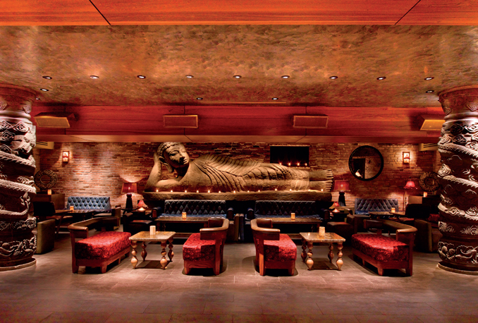 En el nivel de sótano, el visitante puede conocer el Lotus Bar, un espacio donde se extiende una estructura abstracta en forma de la flor de loto. De igual manera, el lounge tiene un plafón de madera con una pieza de arte que simboliza un medallón pintado, una referencia clara a los templos asiáticos. Para completar esta atmósfera, se incluye mobiliario compacto que emplea sillones largos y acogedores para crear un ambiente de club privado de manera íntima y sofisticada.