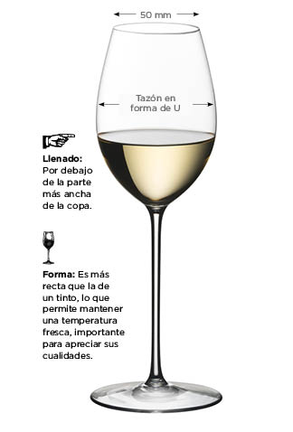 Esta copa favorece los vinos blancos ligeros y cítricos, manteniendo los aromas florales en el interior y acentuando los sabores frutales.