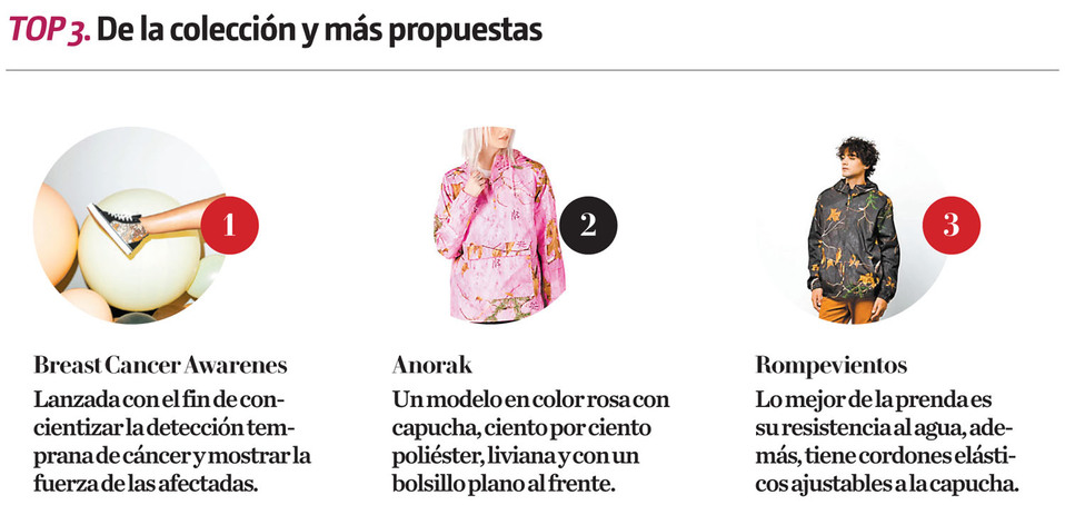 Pero lo mejor es que la línea no se limita solo al calzado, sino que también abarca prendas de ropa y accesorios. Para los hombres se encuentran el anorak de cola de pez Oakmont MTE y el rompevientos Garnett resistente al agua.