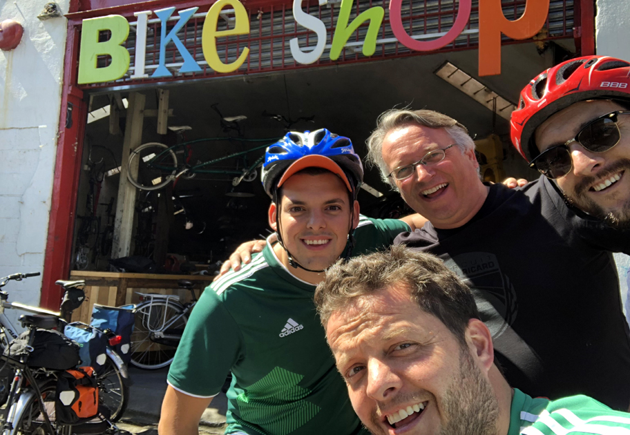 Nos dejó en el bike shop del buen Paul McQuaid, con quien ha llevamos varias semanas comunicándonos por correo para tener listas las bicis indicadas.