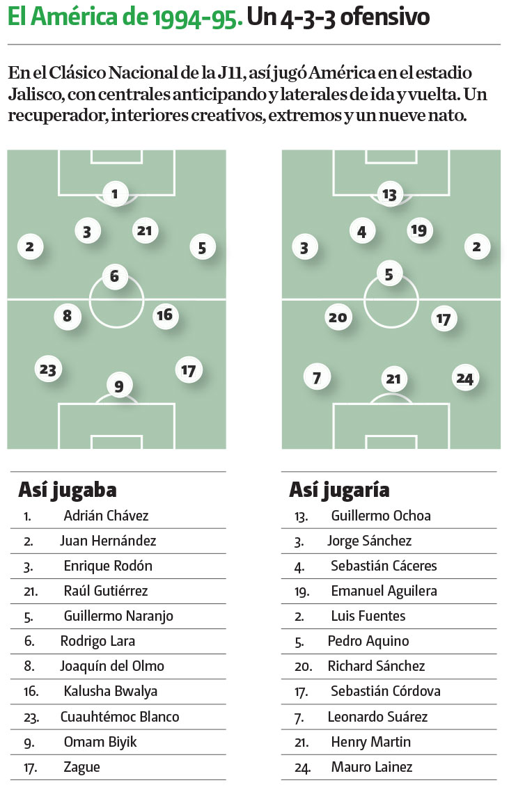 Adrián Chávez fue el portero titular del América de la campaña 1994-95, desde el arco veía cómo funcionaba el equipo y apunta que “ofendía siempre al rival y se defendía bien, jugábamos a uno o dos toques, atacábamos por las bandas; nuestro futbol no pasaba por el centro sino por la explosividad en las bandas y buenos centros al delantero”.