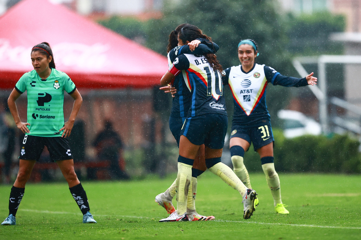 Montse era la que buscaba ser el faro americanista, la delantera apareció por izquierda y colgó un centro que Daniela Espinosa remató con la cabeza y puso la pelota en el poste. Parecía que Santos no resistiría, pero aguantó firme y se hizo más fuerte en medio campo, le discutió la posesión y tuvo incluso su chance para lograr el segundo, pero Jaidy lo evitó.