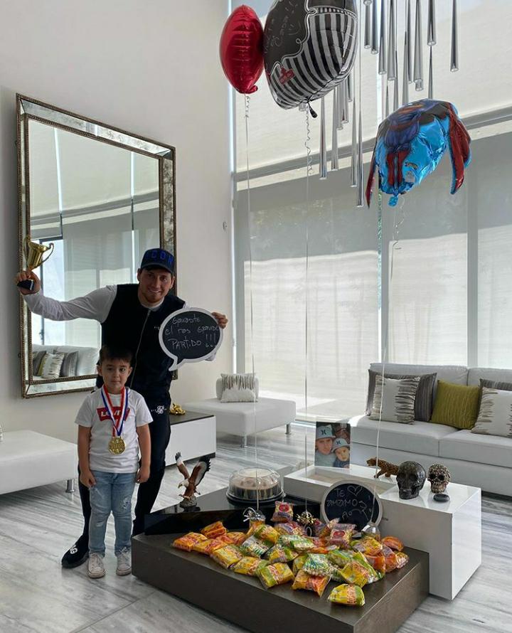 El delantero mostró su gran felicidad con una fotografía en sus redes sociales, en la cual, se le ve alegre a lado de su hijo, junto con globos y varias frituras en la sala de su casa.