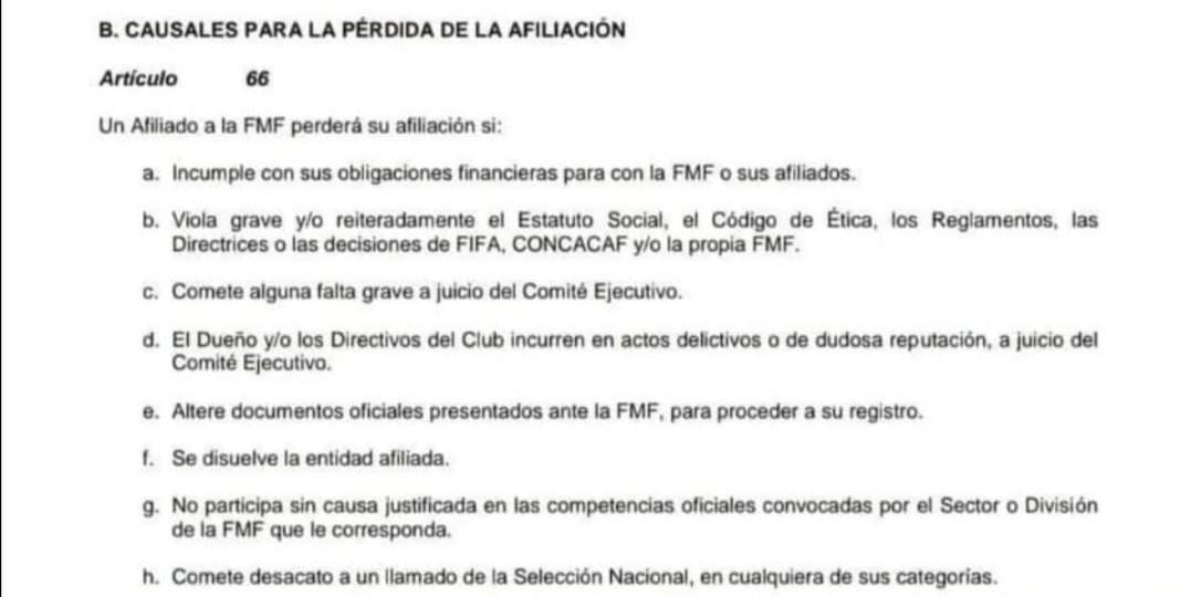 El Estatuto Social de la FMF, así como el Reglamento de la Afiliación, Nombre y Sede, apuntan que es causa de desafiliación si algún dueño o directivo ha incurrido en actos delictivos o de dudosa reputación, como sería el caso de Billy Álvarez.
