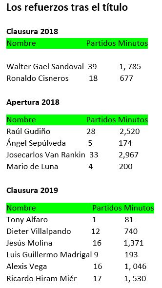 Josecarlos Van Rankin, Ricardo Hiram Miér, Chuy Molina y Raúl Gudiño han respondido a las exigencias, otros al poco tiempo se han ido del equipo como De Luna o Tony Alfaro, quien apenas le ajustó para debutar en Primera y ahora está en Zacatepec.
