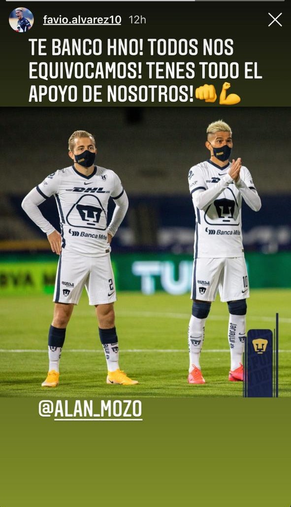 A través de su cuenta de Instagram, Álvarez mostró en sus historias una imagen y un mensaje de apoyo a su compañero " Todos nos equivocamos, tenes el apoyo de todos nosotros".