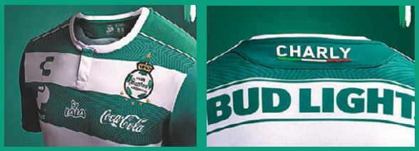 En la espalda ya no está la marca de Corona, ahora es Bud Light. El pantaloncillo en color blanco y medias verdes con vivos blancos, un relieve personalizado.