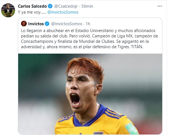 El defensa de Tigres, Carlos Salcedo envió un mensaje a las personas que "no creyeron" en ellos, tras el pase a la final del Mundial de Clubes 2021. Sin embargo también generó polémica entre la afición tras un tuit que compartió. ¿Se va del equipo?