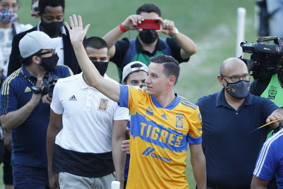 Entre fuegos pirotécnicos, cánticos y mariachi, así fue la presentación oficial de Florian Thauvin, quien sintió esa pasión con una calurosa bienvenida por parte de la afición de los Tigres.