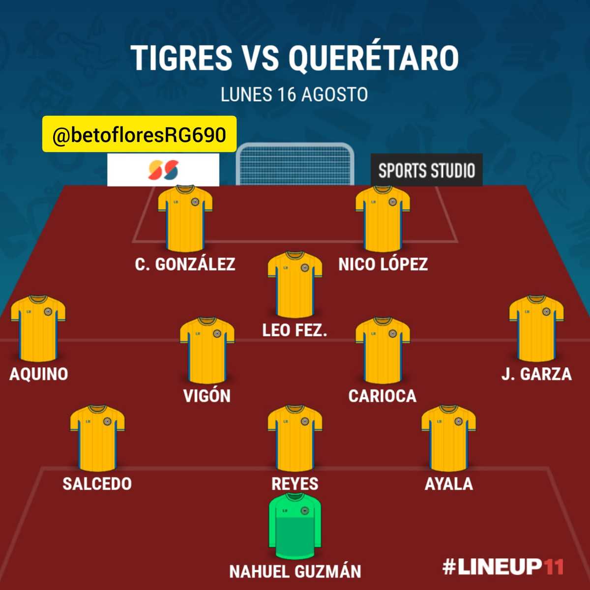 Nahuel Guzmán en el arco; Hugo Ayala, Diego Reyes y Carlos Salcedo como centrales; el novato Jesús Garza y Javier Aquino como carrileros; en medio campo Rafael Carioca, Juan Pablo Vigón y Leo Fernández; mientras que en el ataque estarán Nicolás López y Carlos González.