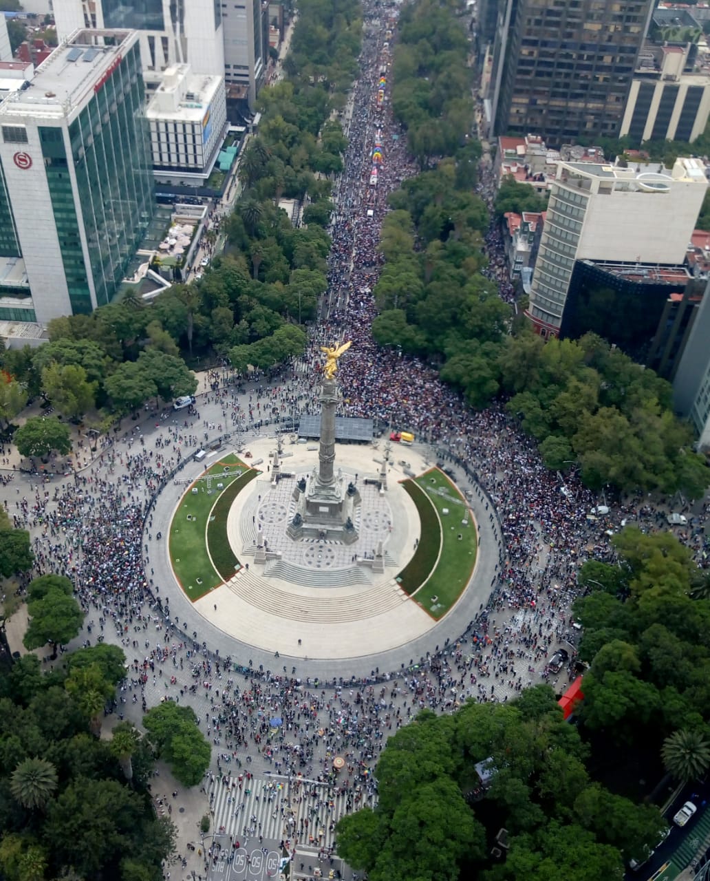 Desde el aire, así se ven los festejos en el Ángel de la Independencia y la Marcha del Orgullo Gay.