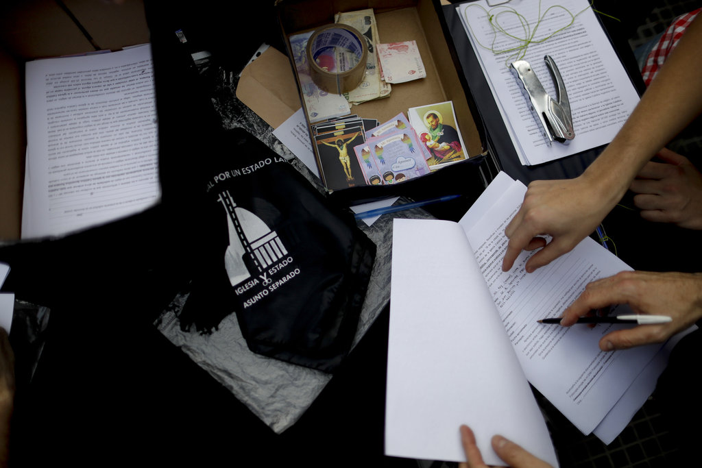 “Estamos recibiendo apostasías de toda la gente que quiera renunciar a su vinculación con la Iglesia Católica”, dijo José Albaya, una de las organizadoras.
