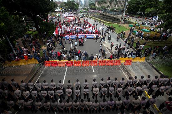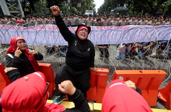 En Indonesia, las trabajadoras se tomaron las calles de la capital Yakarta para pedir al Gobierno un aumento del salario mínimo y una mejora de las condiciones laborales.