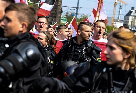 En Alemania, los equipos de la policía antidisturbios decidieron prevenir las tensiones y resguardaron la manifestación convocada por el partido neonazi NPD en Dresde.