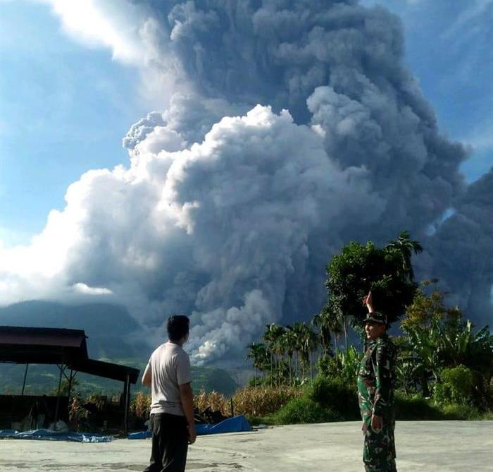 La explosión del Sinabung, localizado en la regencia de Karo, en el norte de la isla, provocó una gran cantidad de ceniza y humo que alcanzaron los 7 mil metros de altura.