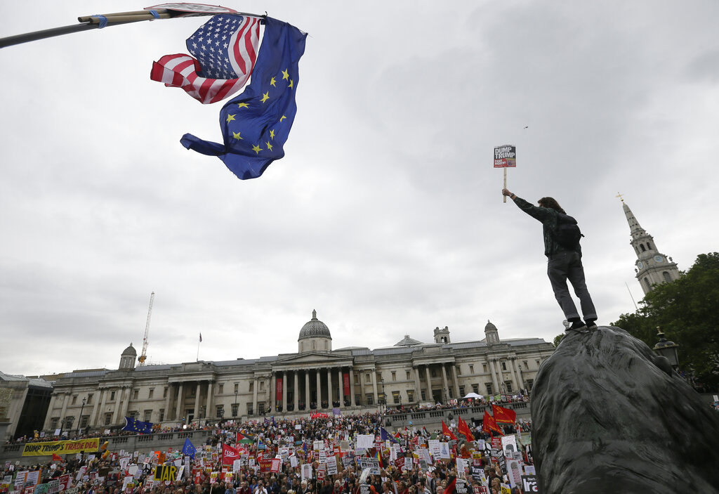 Hacia esa hora comenzaron a concentrarse los primeros manifestantes, protestan desde Trafalgar hasta la zona del Parlamento, cerca de la residencia oficial de Downing Street, donde se reuniron hoy Trump y la primera ministra británica, Theresa May, que dimite este viernes.