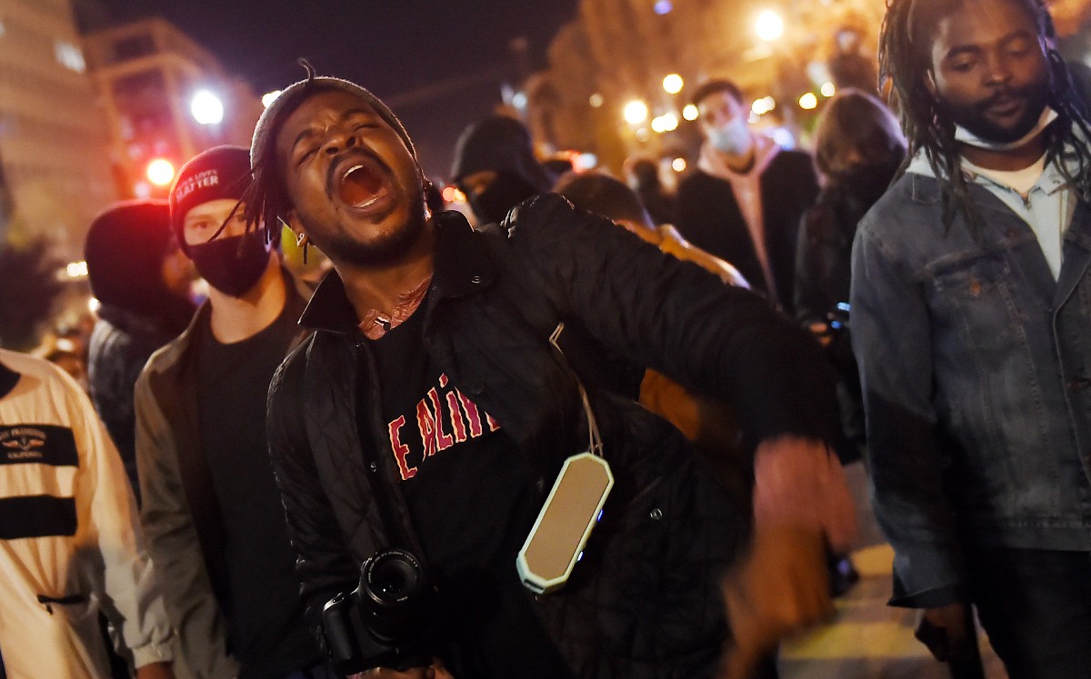 Los manifestantes lanzaron cohetes durante su paso por la Calle 16 hacia la residencia oficial, en una marcha convocada por el movimiento Black Lives Matter, que exige un alto a la violencia racial en el país.