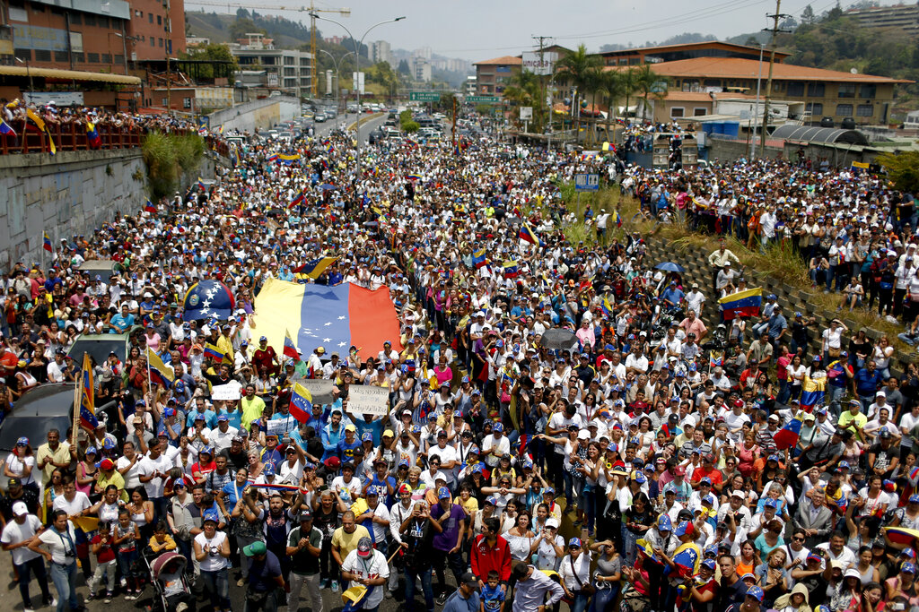 Guaidó, que se declaró presidente interino en desafío a Maduro y que es reconocido como el mandatario legítimo de Venezuela por Estados Unidos y más de 50 países, habló ante una multitud en la ciudad de Los Teques, a unos 20 kilómetros al suroeste de Caracas, la primera escala de una gira por varios poblados del vecino estado Miranda.