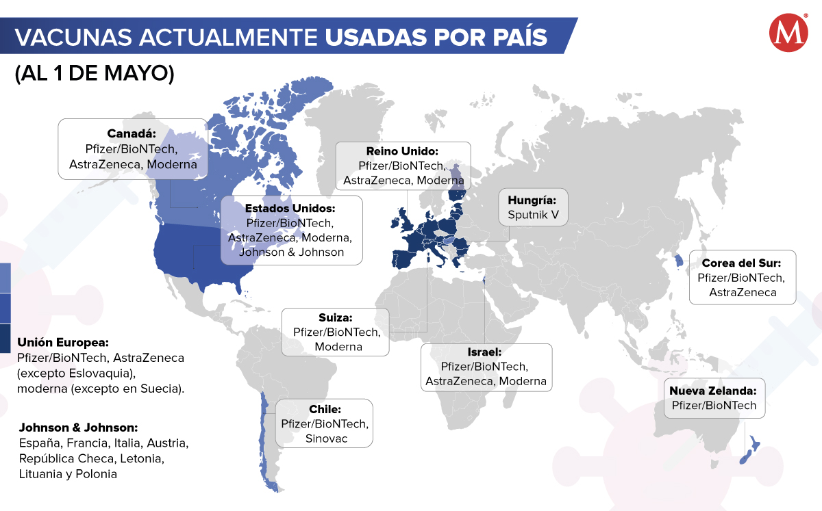 Entre estas tres naciones y Eurogrupo poseen además gran parte de las dosis que actualmente están desarrolladas y ya cuentan tanto con la aprobación de sus respectivos reguladores sanitarios (Pfizer/BioNTech, AstraZeneca, Moderna y Johnson & Johnson) como de la propia OMS.