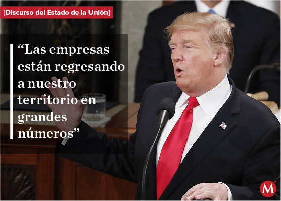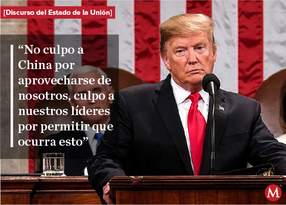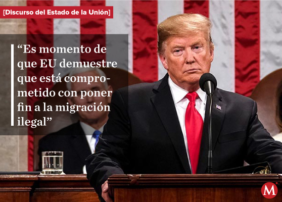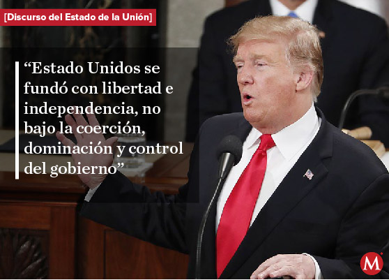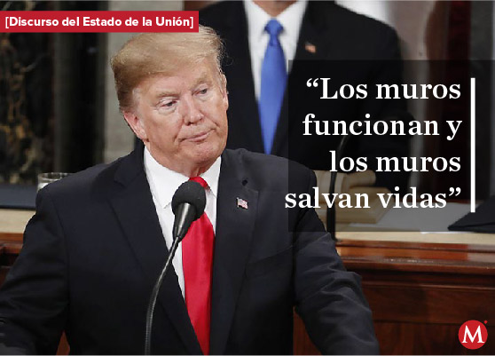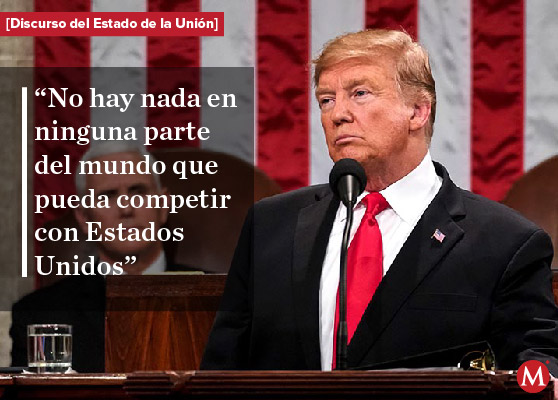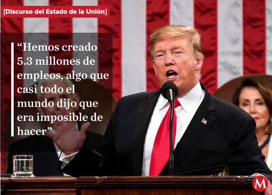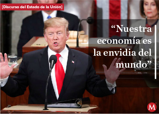 Estas son las frases más destacadas de su segundo discurso del Estado del la Unión, del presidente de Estados Unidos, Donald Trump, en el que habló que muro fronterizo en la frontera con México para detener a los inmigrantes, la economía y los tratados económicos con varios países, la crisis en Venezuela, además de las inversiones en el sector salud.