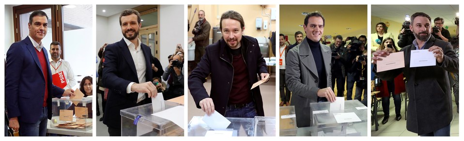 Los candidatos a la presidencia son: Pedro Sánchez (Partido Socialista Obrero Español, PSOE), Pablo Casado (Partido Popular, PP), Albert Rivera (Ciudadanos), Pablo Iglesias (Unidas Podemos, extrema izquierda), Íñigo Errejón (Más País) y el líder del ultraderechista Vox, Santiago Abascal.