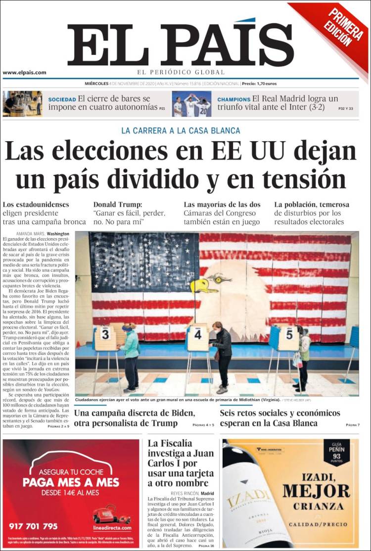 El País (España) - "Las elecciones en EE UU dejan un país dividido y en tensión"
