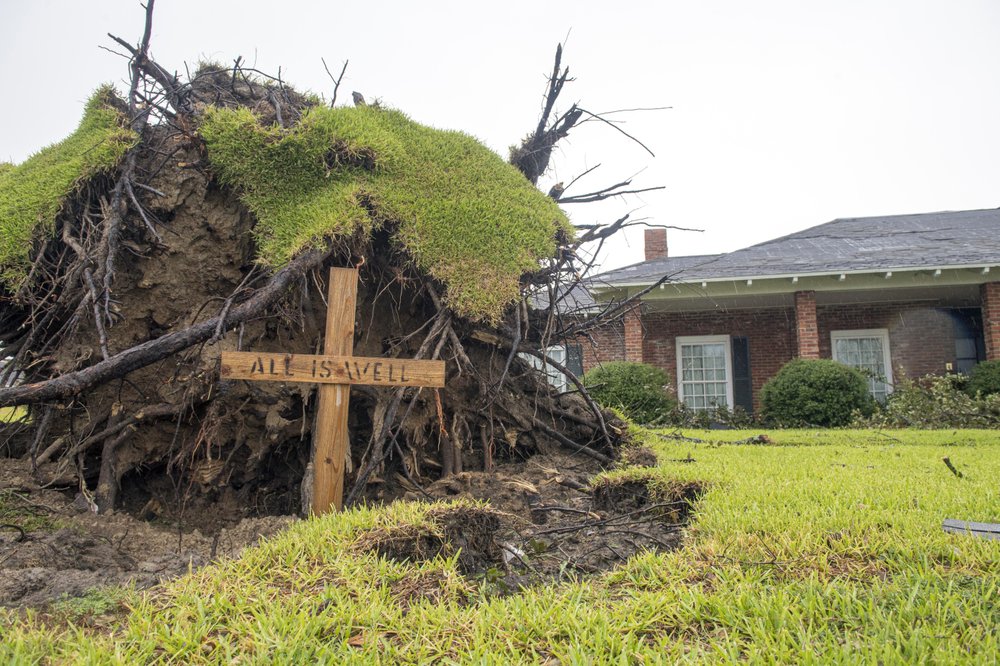 En Lake Charles, las motosierras zumbaban y maquinaria pesada arrastraba ramas de árboles en el jardín delantero de Stanley y Dominique Hazelton, quienes resistieron la tormenta en el piso de un baño. Un árbol perforó el techo no lejos de donde la pareja se estaba cubriendo.
