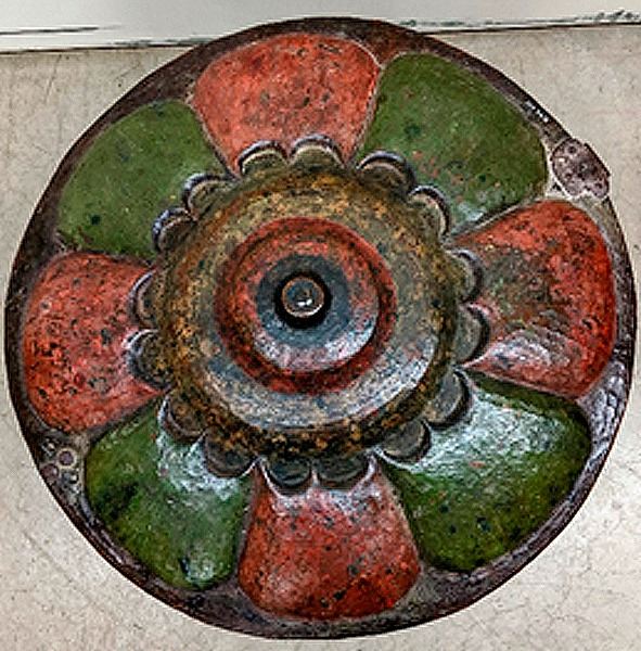Además contiene una tapa y un cerrojo de hierro remachado en forma de lágrima, cuyo uso principal se dio en el siglo XIX, como receptáculo de agua bendita en la antigua Misión de Caborca.