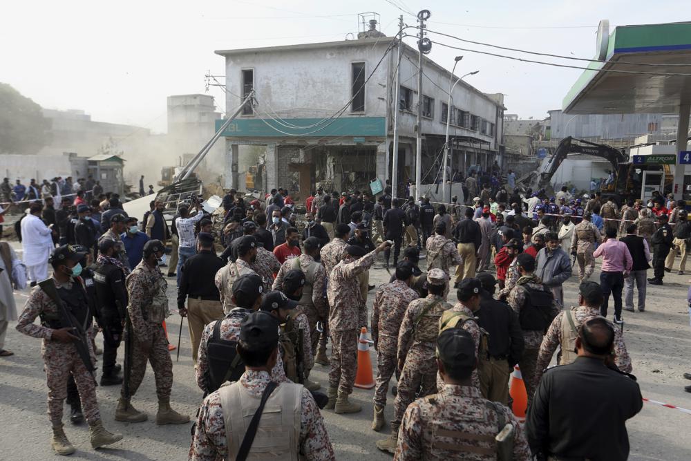 La poderosa explosión destruyó el edificio del banco HBL. Las imágenes de video transmitidas por las estaciones de televisión locales mostraron que toda la estructura de la sucursal de Shershah fue dañada.