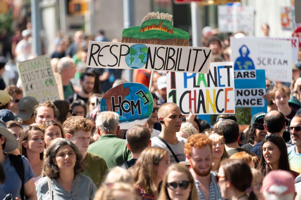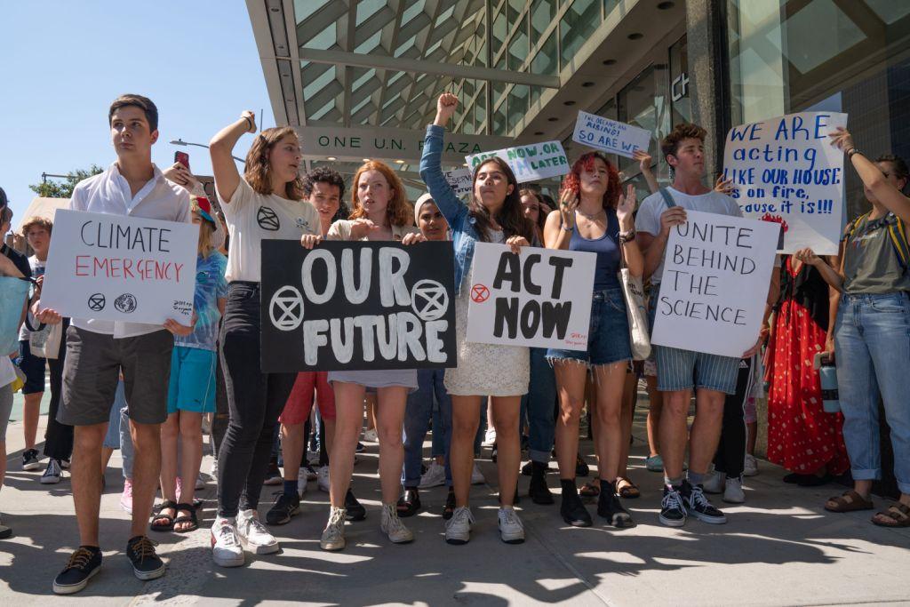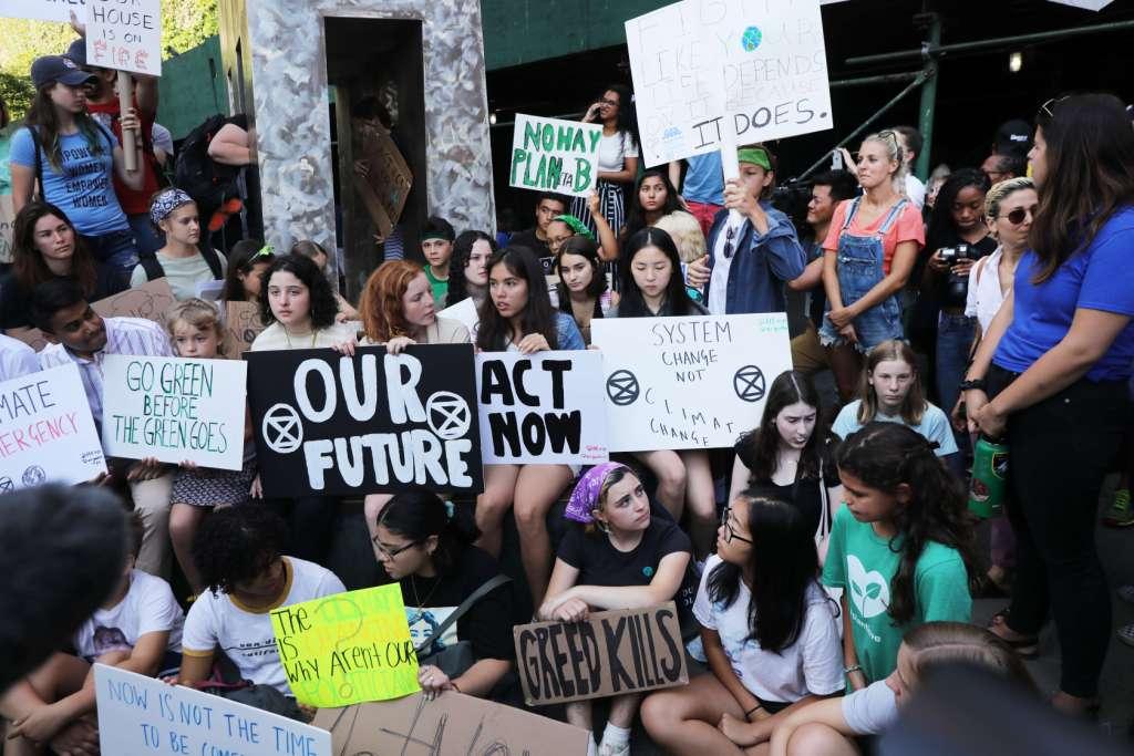 Como cada viernes desde hace seis meses, impulsados por el movimiento "Viernes por el Futuro" creado hace exactamente un año por Thunberg, varios estudiantes de Nueva York han faltado a la escuela para exigir acciones contra el calentamiento global y denunciar el escepticismo del presidente estadunidense Donald Trump al respecto.
