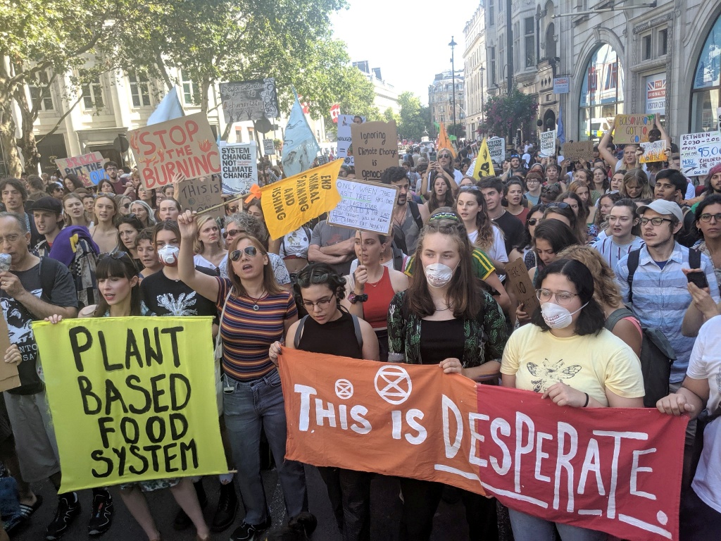 "Paren la destrucción ahora" y "Salven nuestro planeta", podía leerse en las pancartas de la concentración en Londres, organizada por Extinction Rebellion (XR), el movimiento de desobediencia civil creado a finales de 2018 para luchar contra la inacción ante el cambio climático.