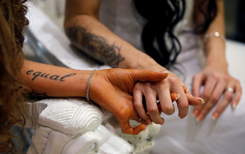 Robyn Peoples, de 26 años, trabajadora sanitaria de la ciudad, y Sharni Edwards, de 27 años, una camarera oriunda de Brighton, se convirtieron en la primera pareja del mismo sexo de la provincia británica en casarse, según el grupo activista Love Equality.