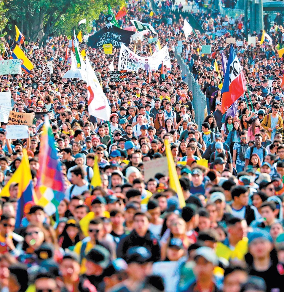 Desde el jueves ríos de gente se movilizan a diario en el mayor desafío popular que haya encarado un gobierno desde los años setenta. Duque instaló el domingo un "diálogo social" para escuchar los reclamos callejeros.