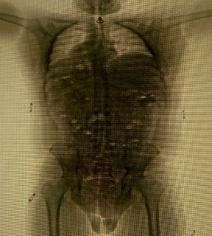 La captura, dirigida por el fiscal provincial Eduardo Regalado Mayta, se realizó luego que personal policial del aeropuerto detectara en actitudes sospechosas a José Antonio Rosas Bautista, quien fue sometido a un examen de rayos X que determinó la presencia de 40 elementos extraños en su cuerpo.