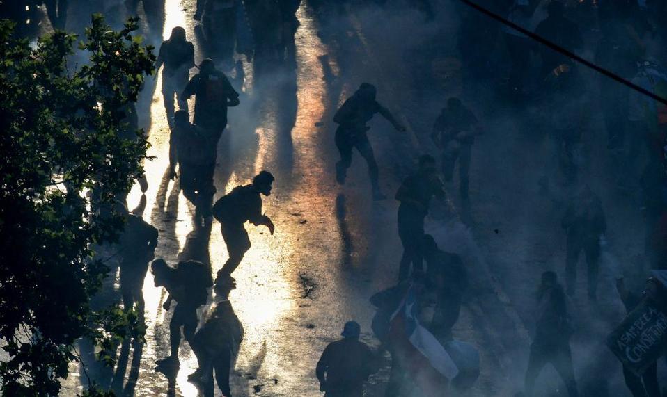 La policía antimotines hizo frente a los manifestantes con chorros de agua y disparos de bombas lacrimógenas, que inundaban todo el centro de Santiago, un día después de que dejó de regir el estado de emergencia y los militares abandonaron las calles, en un intento del presidente Sebastián Piñera por descomprimir la crisis.