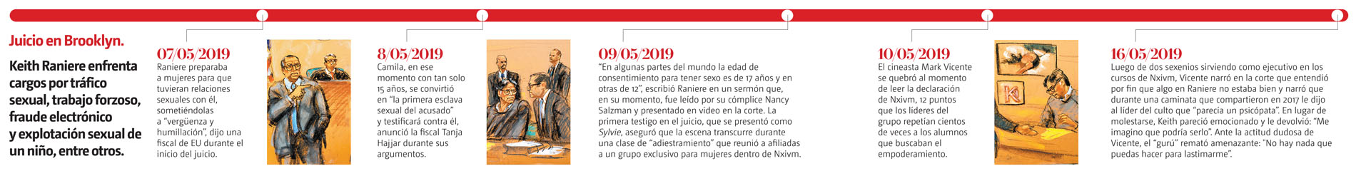 Durante su participación al arranque del juicio, el testigo Mark Vicente también recordó la colecta organizada por la rica heredera Clare Bronfman, quien financiaba muchas de las actividades de Raniere para que Nxivm aportara a la precampaña presidencial de Hillary Clinton en 2008.
