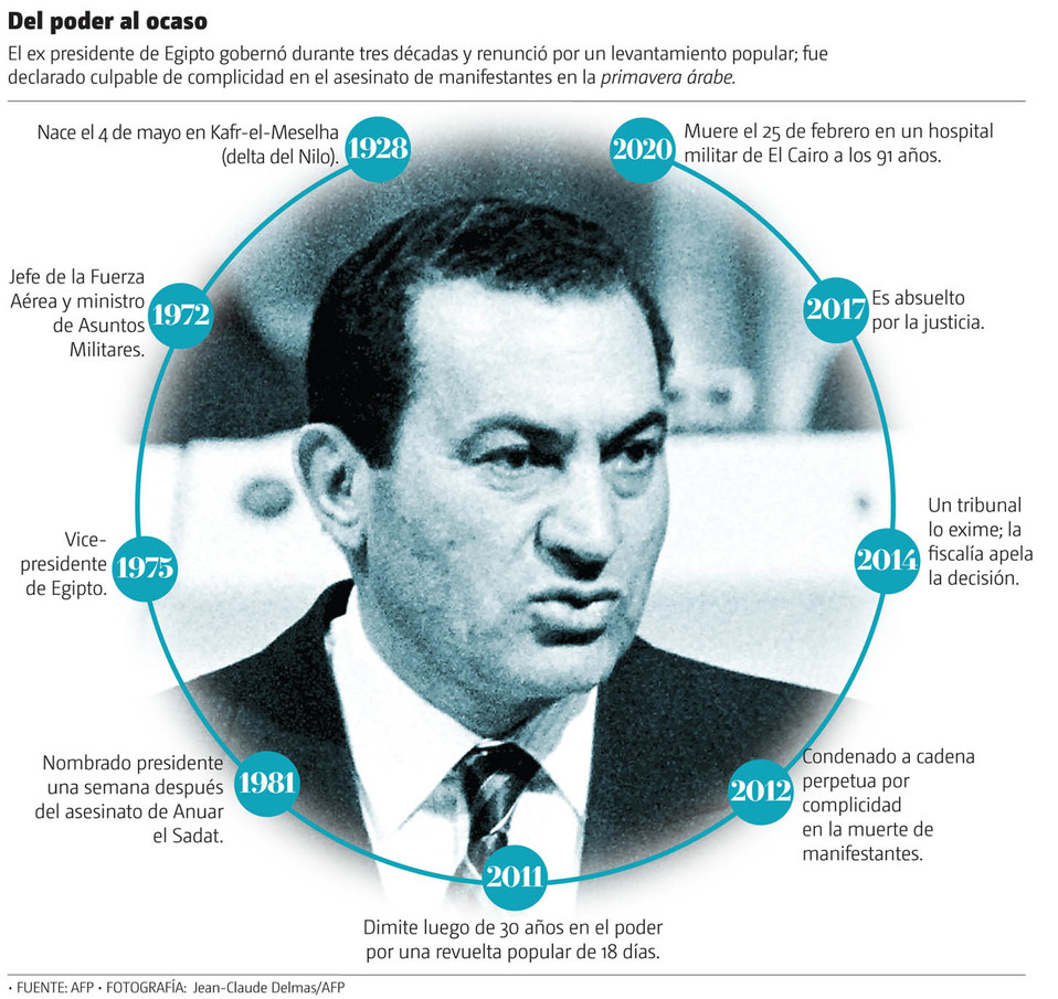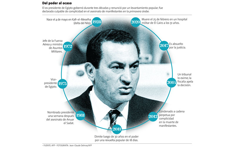 Hosni Mubarak paseó su silueta baja y fornida y sus gafas negras durante 30 años por la escena internacional, pero la historia recordará al ex presidente egipcio —derrocado durante la primavera árabe— como el dirigente de un régimen corrupto.